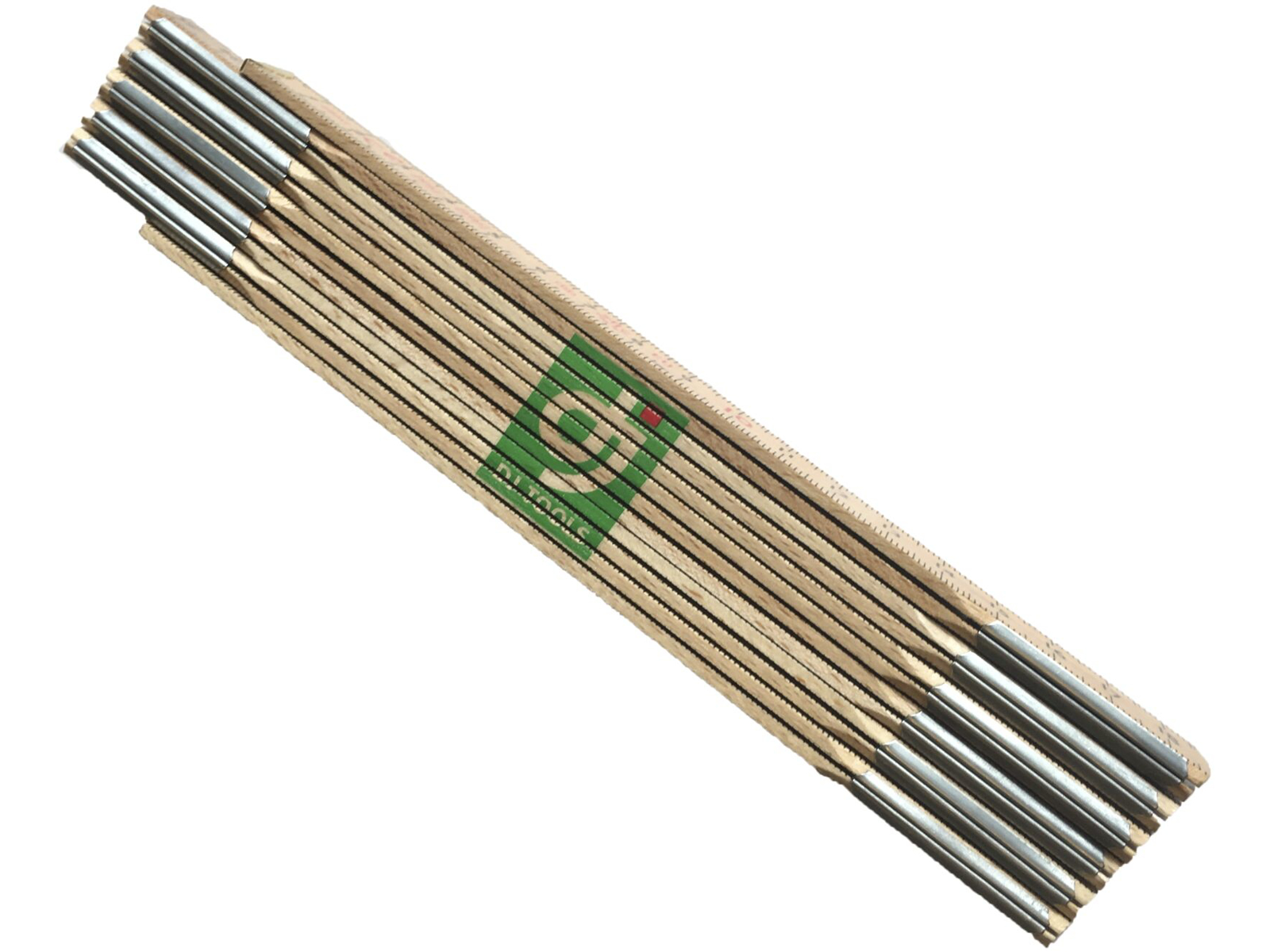Tommestok med 12 led og metrisk gradering i sort på begge sider og røde decimetercifre. Forsynet med vandbaseret beskyttelseslak. Typegodkendt iht. EU klasse III.