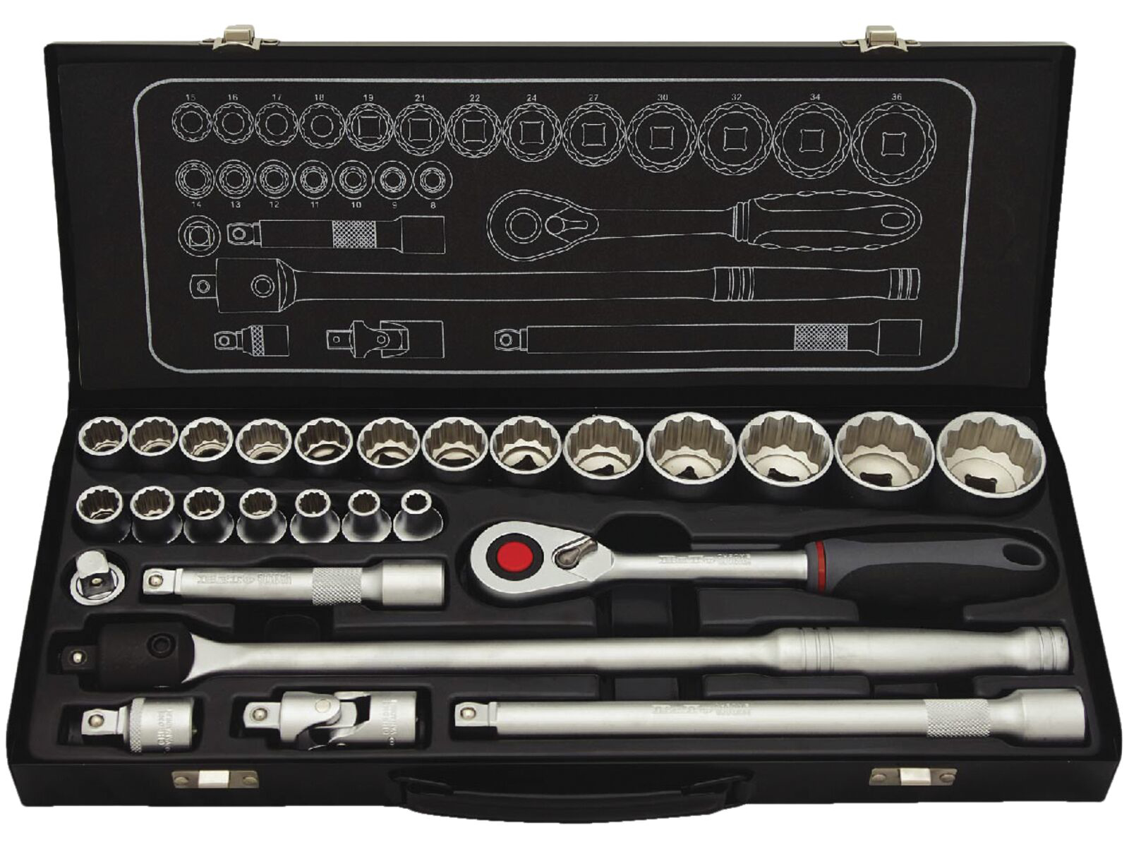 Topnøglesæt 1/2" 12-KANT 10-36 mm med kraftledgreb