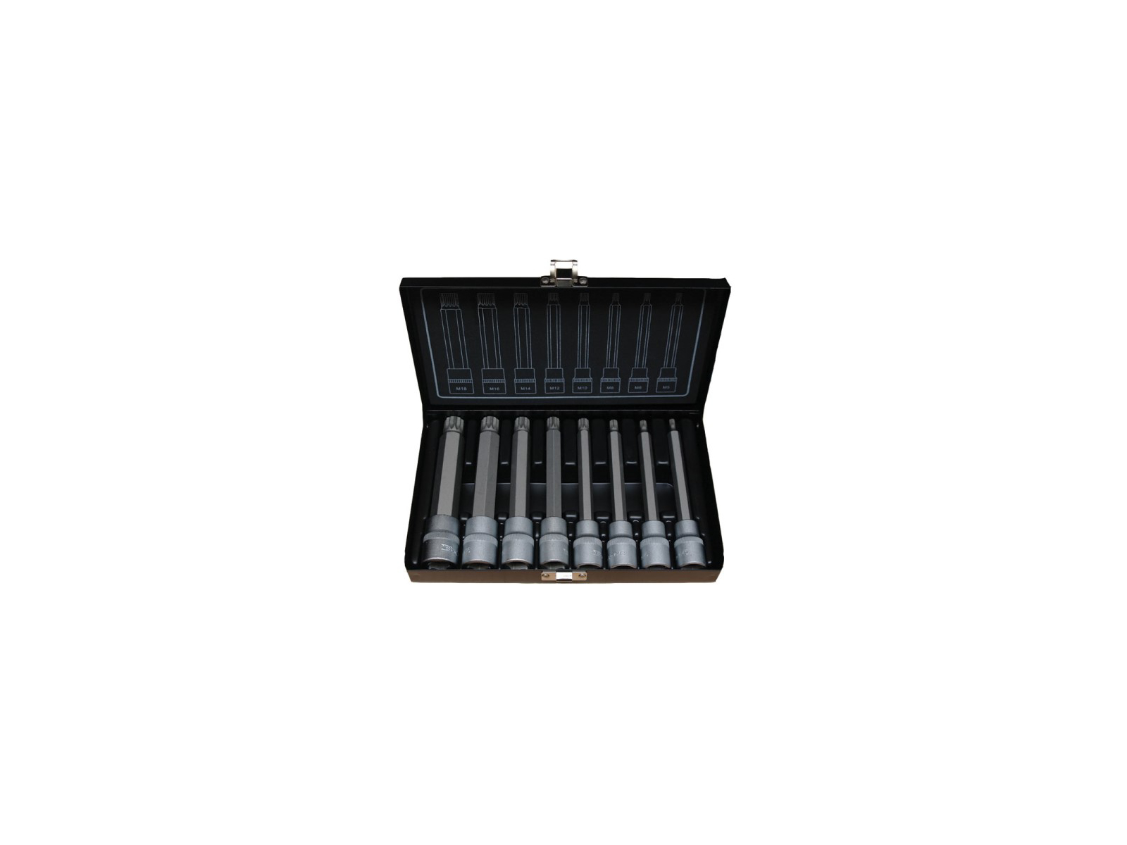 Stifttopsæt lang 1/2" XZN 5-6-8-10-12-14-16-18. Levers i Metalbox.