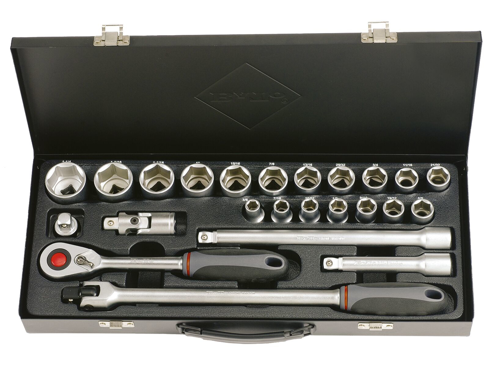 Topnøglesæt 1/2" 6kt. Tommer / B-S1107 24 dele 3/8 - 1-1/4