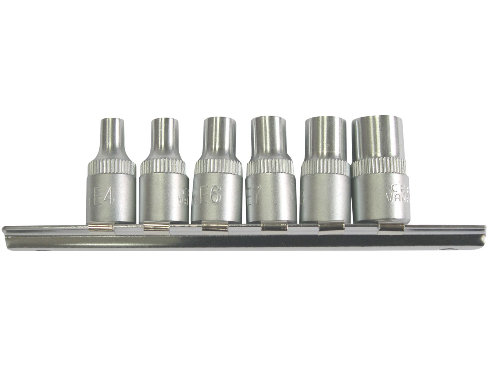 E-topsæt 1/4" E4-5-6-7-8-10. Metalskinne.