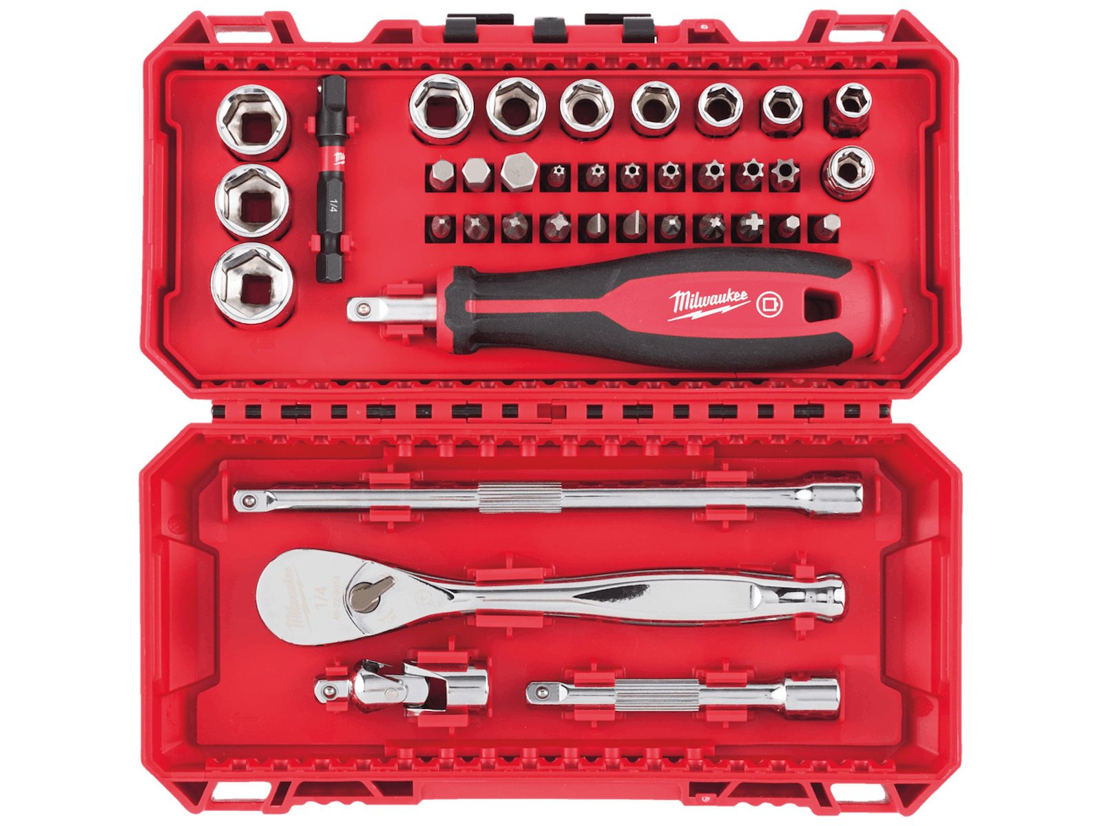 Milwaukee Topnøgle-/bitssæt 1/4" m/skralde, 38 dele
