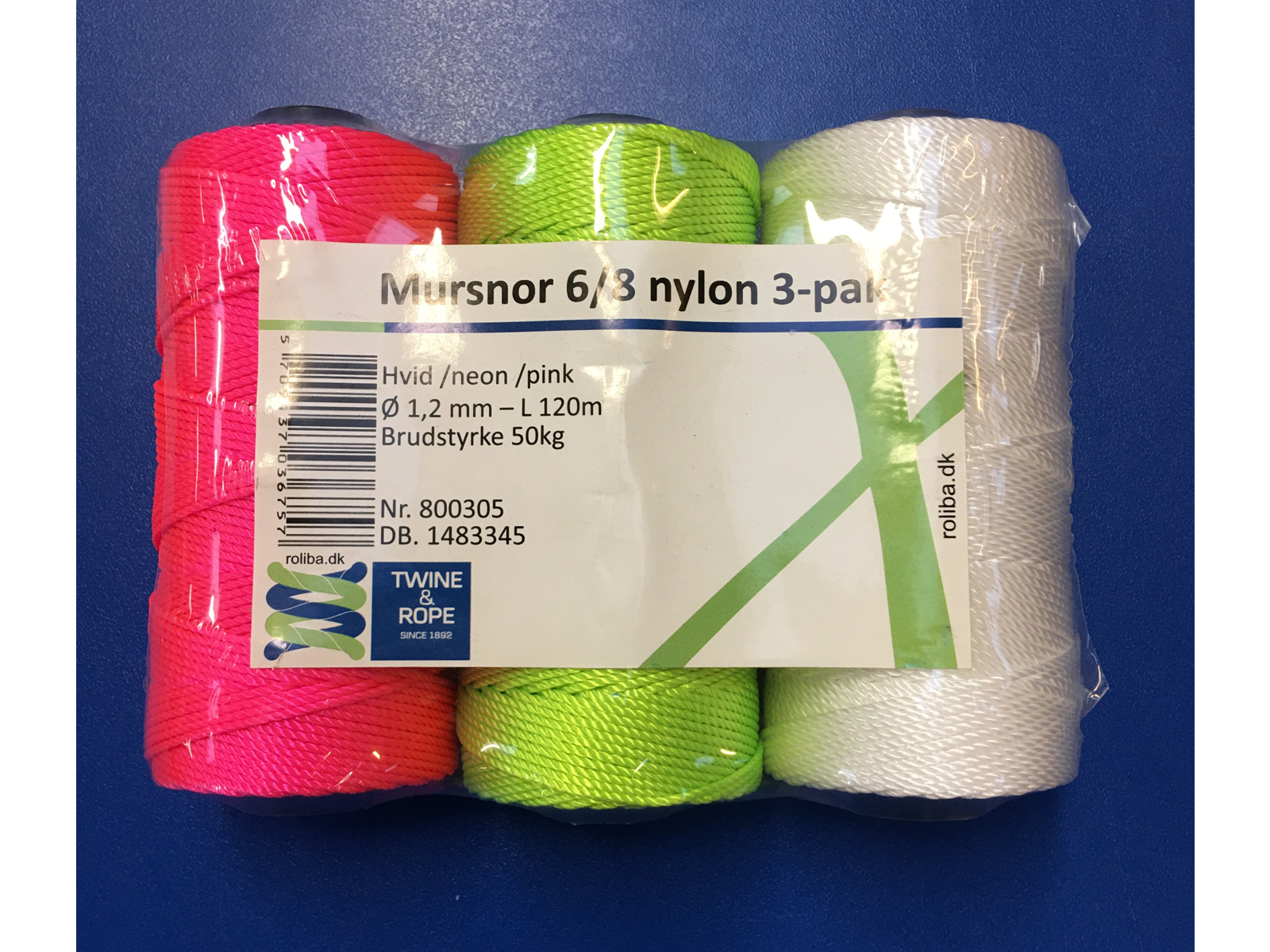 Mursnor i hvid/neon/pink nylon er i håndværkerkvalitet til den professionelle forbuger. Mursnoren er ideel til flise- og murer opgaver, såsom anlæg af vej, have og parkanlæg. Mursnoren kan ligeledes anvendes, hvor almindelig flugtsnor ønskes. Mursnoren leveres som 3-pak.