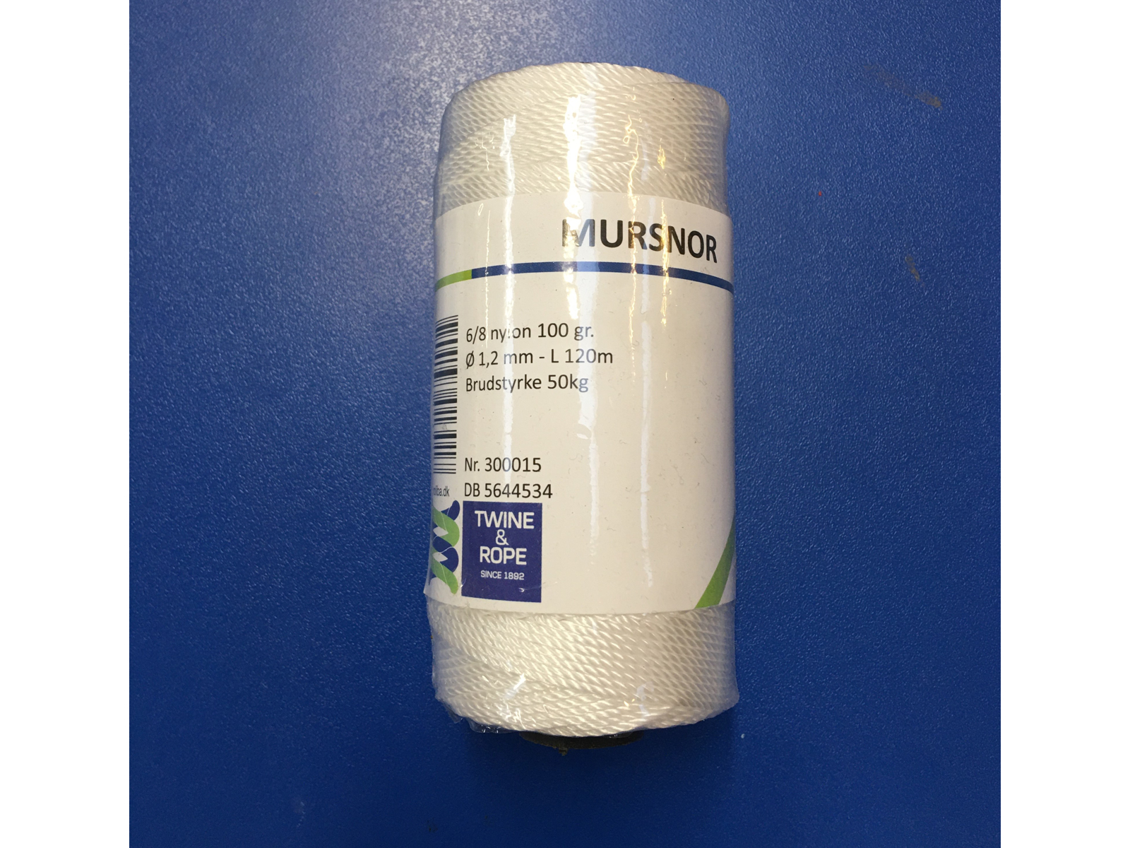 Mursnor 3-slået i Hvid er i håndværkerkvalitet til den professionelle forbruger. Mursnoren er ideel til flise- og murer opgaver. Snoren kan anvendes til at anlægge vej, have, parkanlæg og som almindelig flugtsnor. Mursnoren er af nylon og bliver leveret på krydsspole af plastrør, hvilket forhindrer spolen i at falde sammen i fugtigt vejr