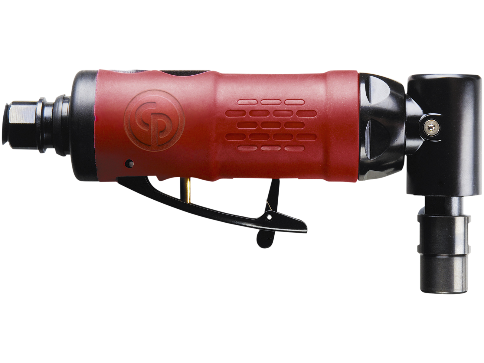 Pneumatisk vinkellynsliber med 6 mm spændetang og bagudrettet luftafgang. 23.000 omdr./min. Min. slangetilslutning 3/8".