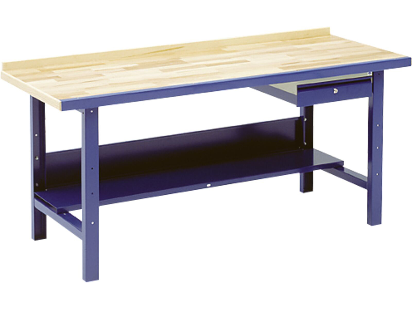 Det enkle 1,5 m lange værkstedbord bestående af 48 mm. bordplade med bøgeparket, stålforkant, solid vange, hylde og aflåselig enkeltskuffe med stålkugleudtræk. Der er mange tilvalgsmuligheder, som gør det muligt at sammensætte et arbejdsbord med bl.a. værktøjstavle eller skuffeskab.