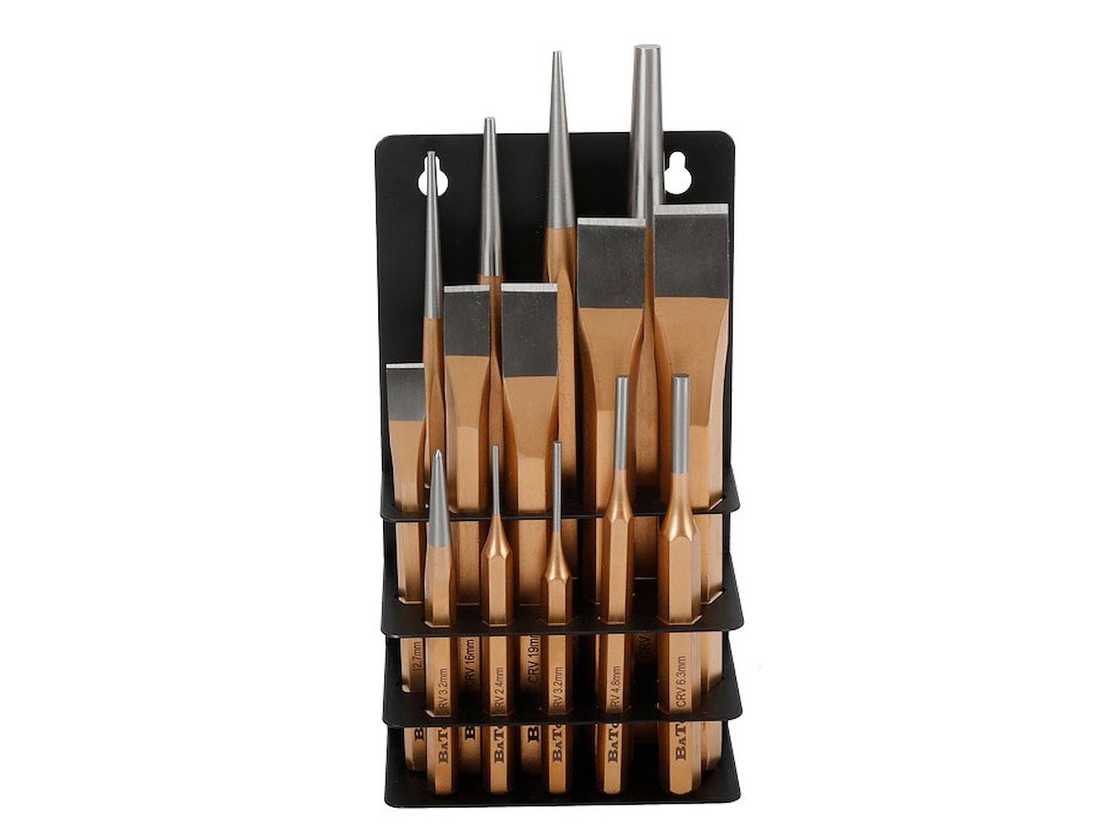 BATO Mejsel-kørner-dyknagle og dorn kombisæt 14 dele i kraftig metal stander