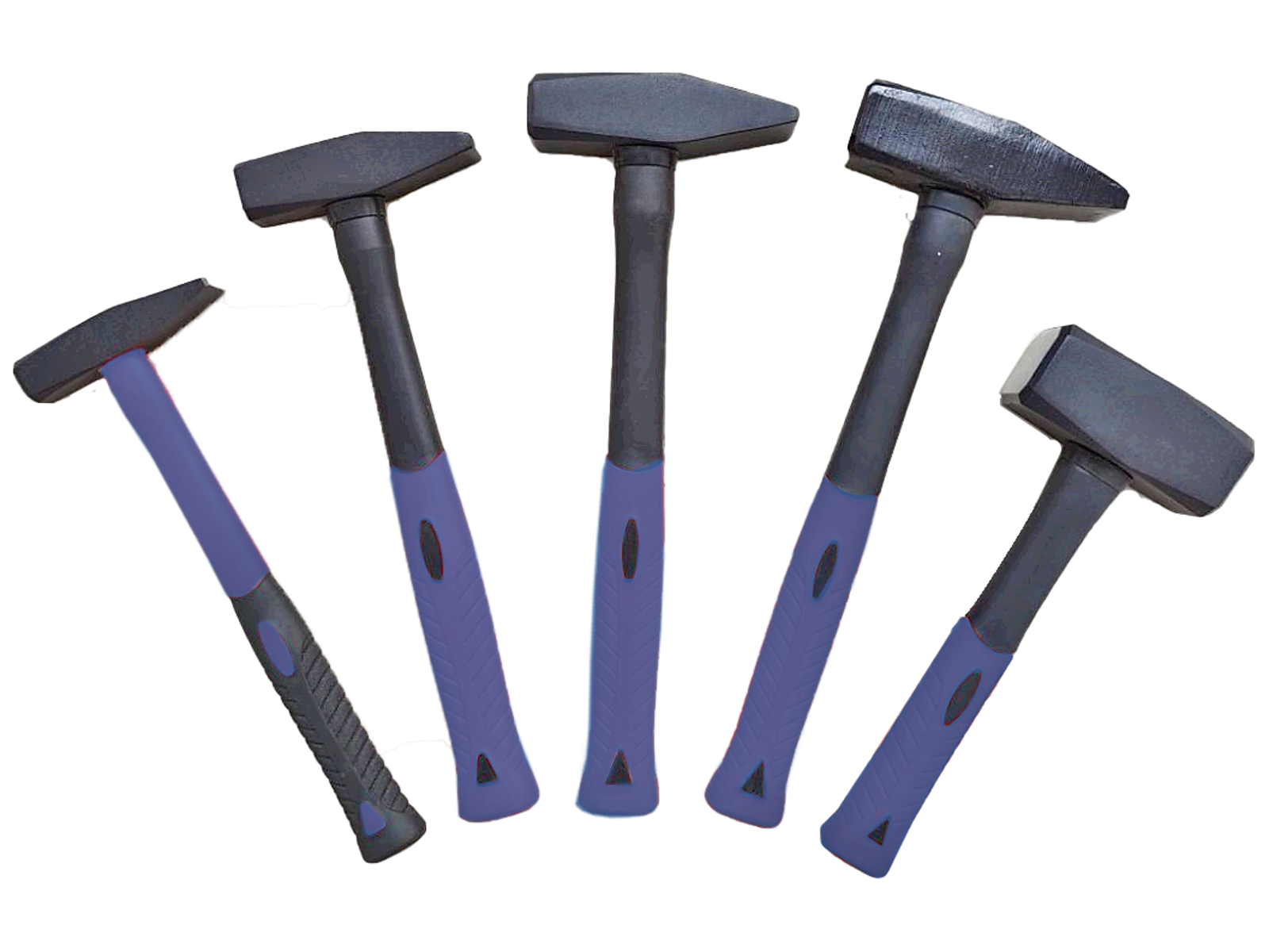 Hammersæt glasfiberskaft, 4 bænkhamre + 1 mukkert