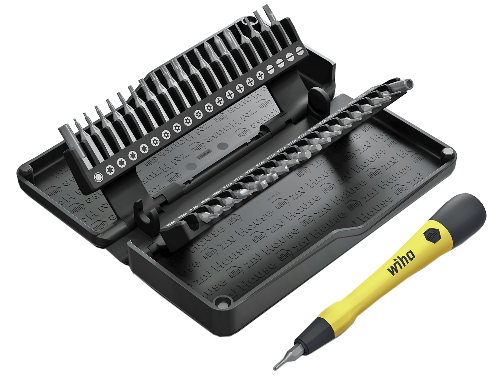 Wiha Zai Hause microbit-sæt med 40 bits. Perfekt til alle mikroskrue- og filigranapplikationer. I kompakt og robust opbevaringsboks med integreret magnetisk lås. Sættet indeholder: TA2, TA2.6, T2, T3, T4, T5, P2, P3, P4, P5, U2.6, SIM, T6H ,T7H ,T8H ,T9H ,T10H ,T15H ,SL1.0 ,Sl2.0 ,SL3.0 ,T2.5, T3.0, H1.5, H2.0, H2,5, H3.0, SQ1, SQ2, Y000, Y00, Y1, E, PH000, PH00, PH0, HP1 og HH2.