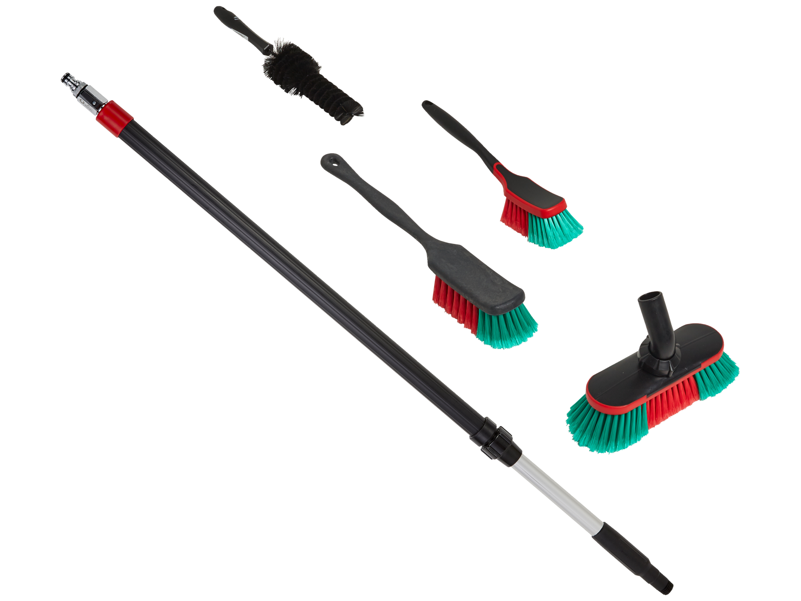 Vikan transport system startpakke med on/off funktion til vand. Sættet indeholder 1 stk. 522252 autobørste med langt skaft og bløde/spaltede børstehår, 1 stk. 525252 universel autobørste til små områder, 1 stk. 526852 autobørste med vandgennemløb, 250 mm med bløde/spaltede børstehår, 1 stk. 525052 sort fælgbørste på 65 mm samt 1 stk. 297452C alu teleskopskaft med vandgennemløb og on/off funktion til vand samt click-kobling, 1060-1600 mm. Kompatibel med Gardena og Nito Click.
