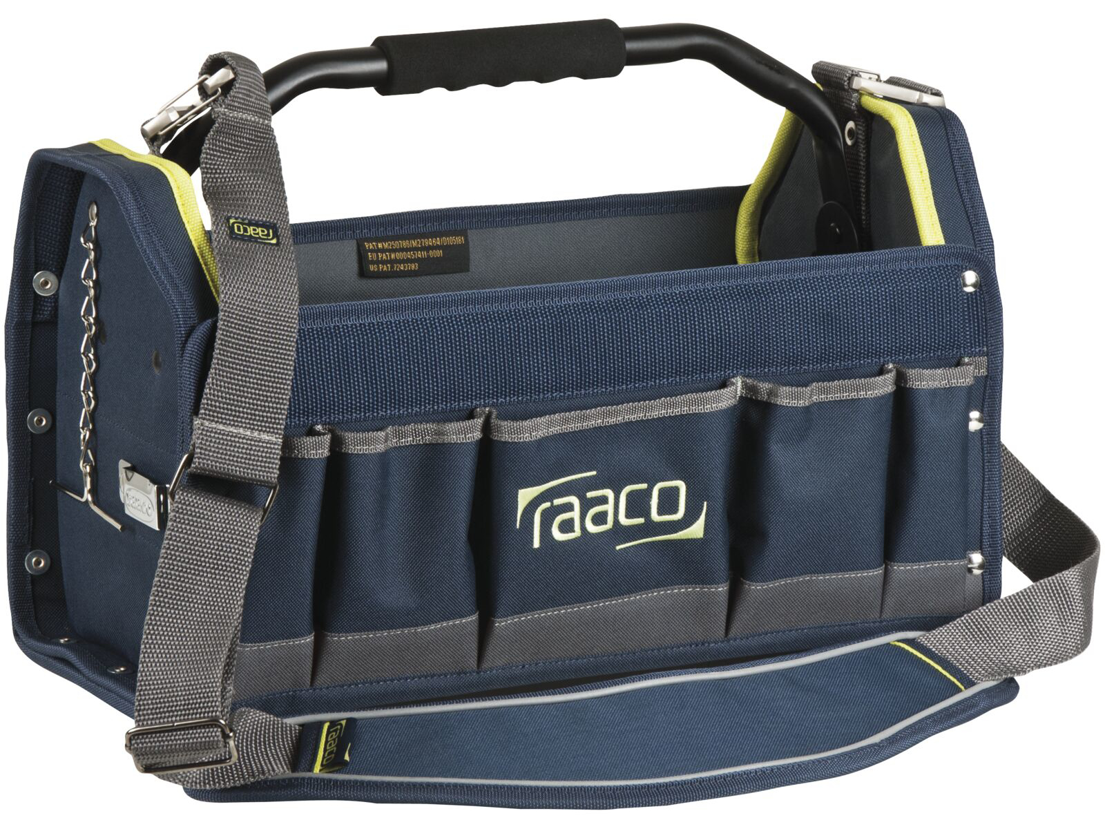 16" professionel værktøjstaske med et stort antal forstærkede lommer med høj slidstyrke, et stort rum i taskens fulde længde til stort værktøj samt hård bund med kraftige plastfødder, som hæver tasken over underlaget. Det stærke bøjlehåndtag med gummigreb kan vippes til siden, så du har nem adgang til indholdet i tasken. Der medfølger en aftagelig, justerbar og ergonomisk bærerem, der skåner skulderen ved høj vægt. Værktøj medfølger ikke.