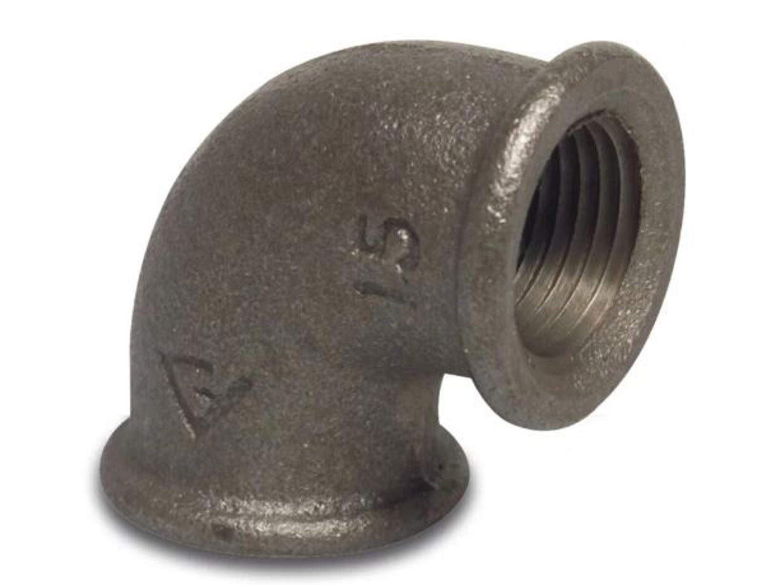90 GR. VINKEL STØBEJERN SORT 1" INDV. GEVIND