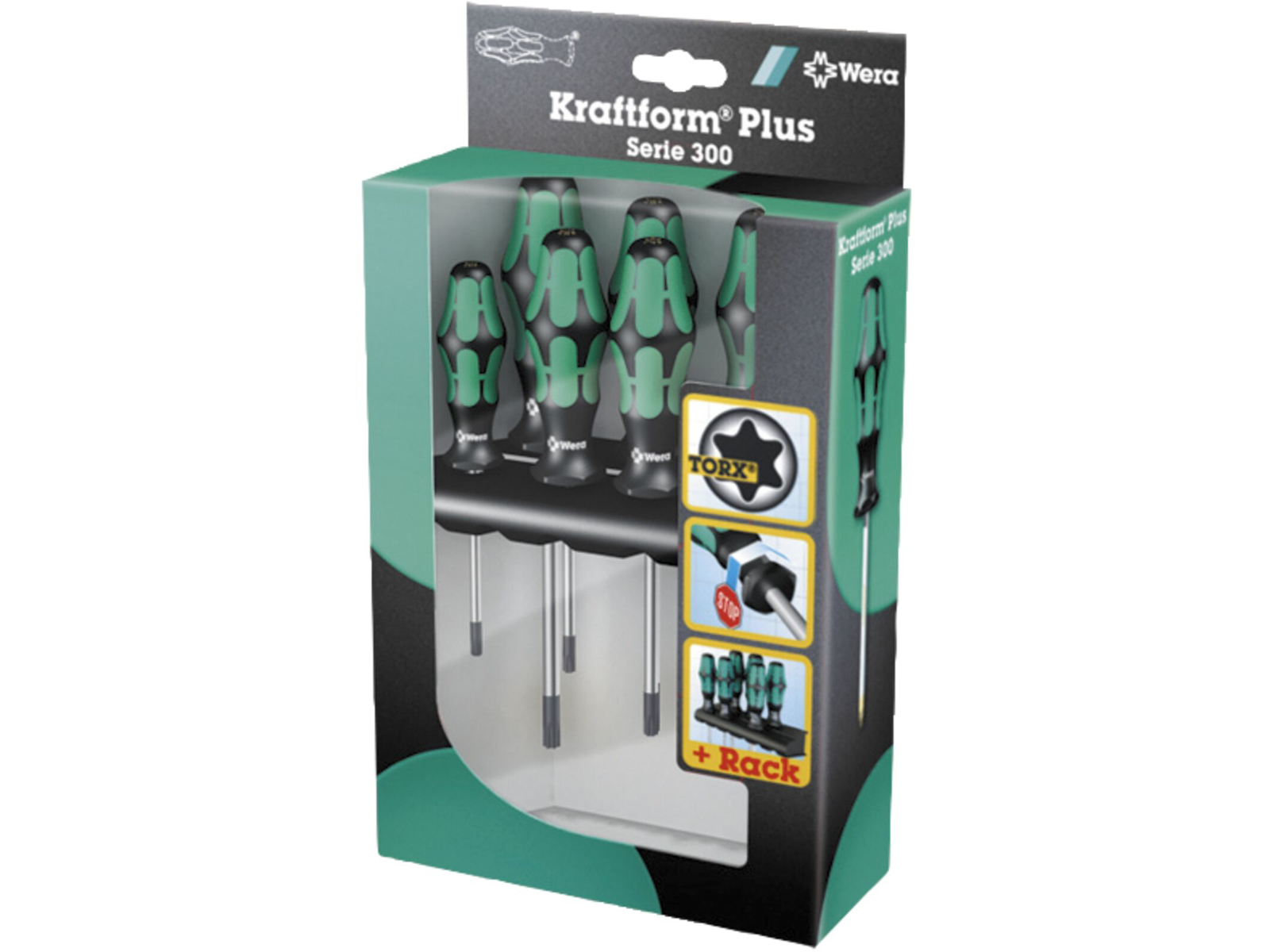 • WERA Kraftform-Plus skruetrækker sæt, 6 Torx og rack.
