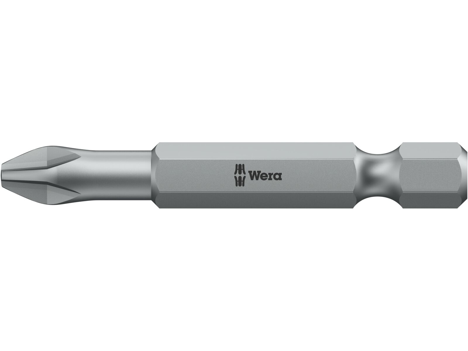 WERA Bits til Phillips skruer, Torsionsform mod for tidlig slitage, hård og slidstærk, særligt egnet til hårde skrueemner f.eks. blik eller metal.