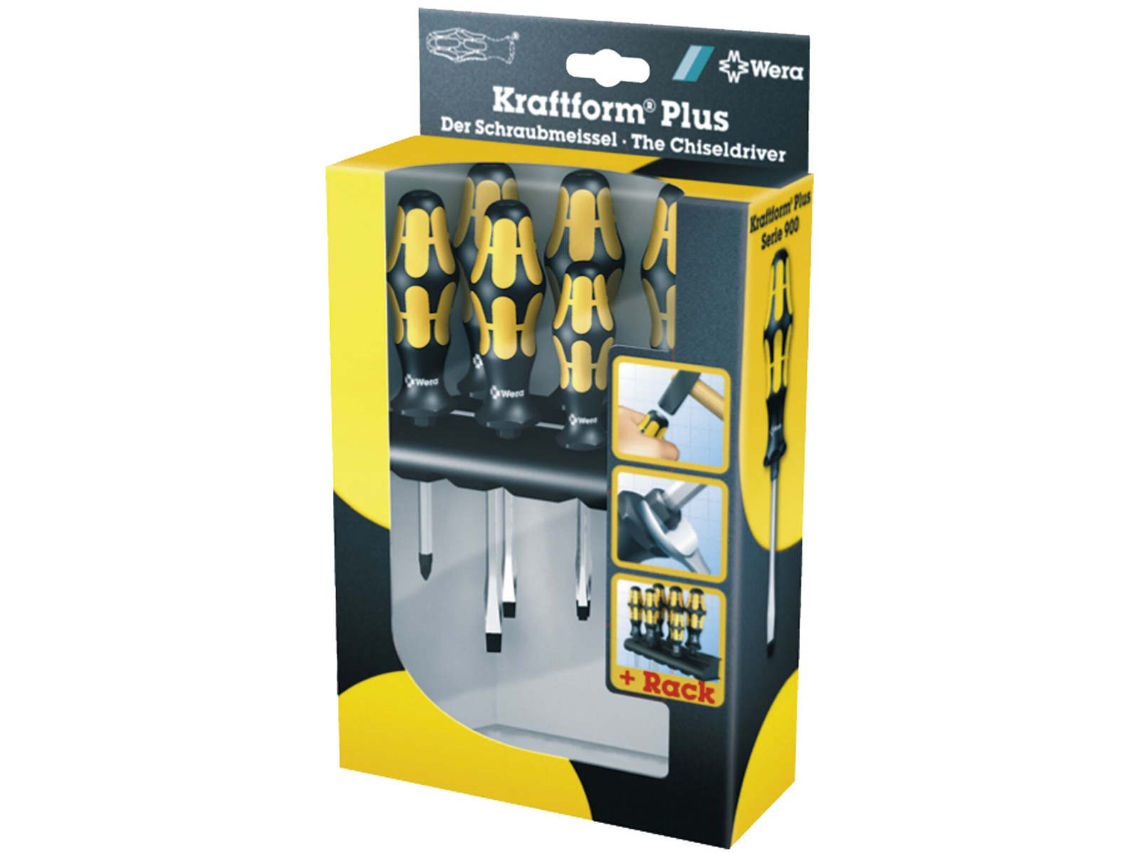 WERA Kraftform-Plus skruetrækker sæt, 4 lige kærv, 2 pozidrive og rack.